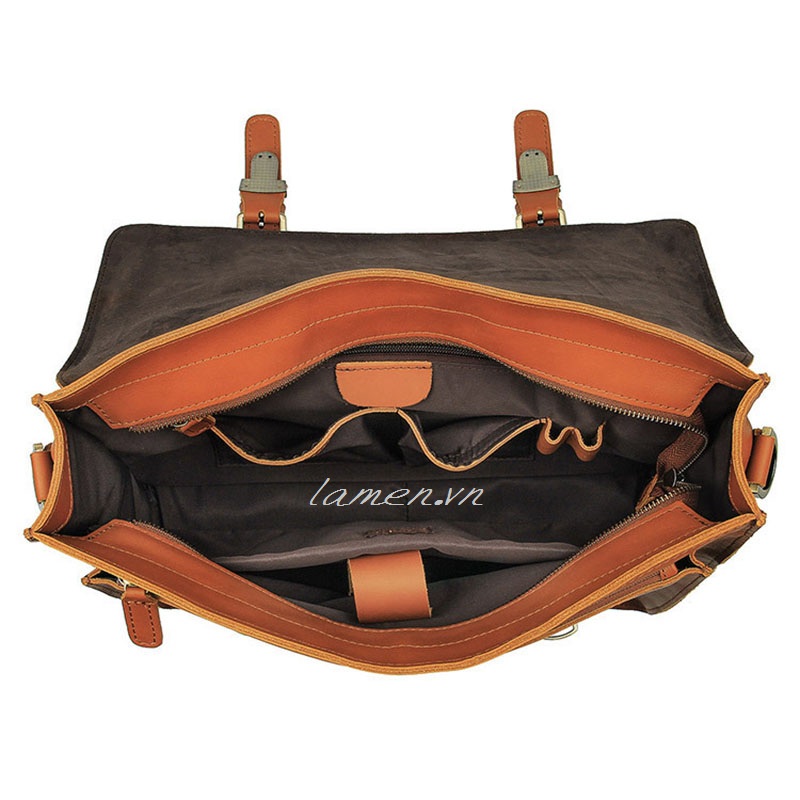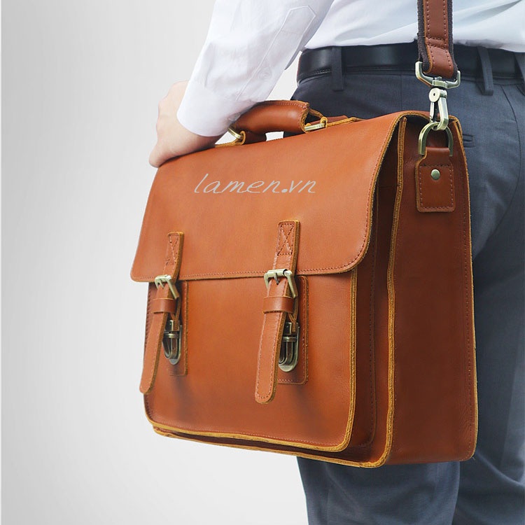 Cặp da nam công sở BAG005 - Da bò. - Kích thước: 14 inch. - Cặp xách tay nam. - Màu sắc: đồng đều. - Handmade 100%
