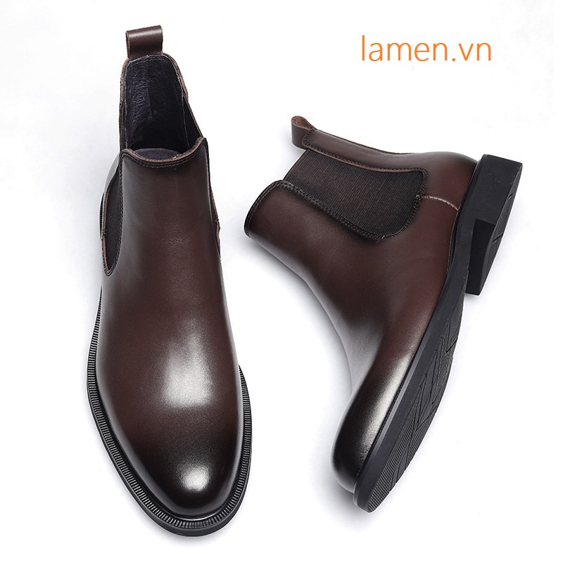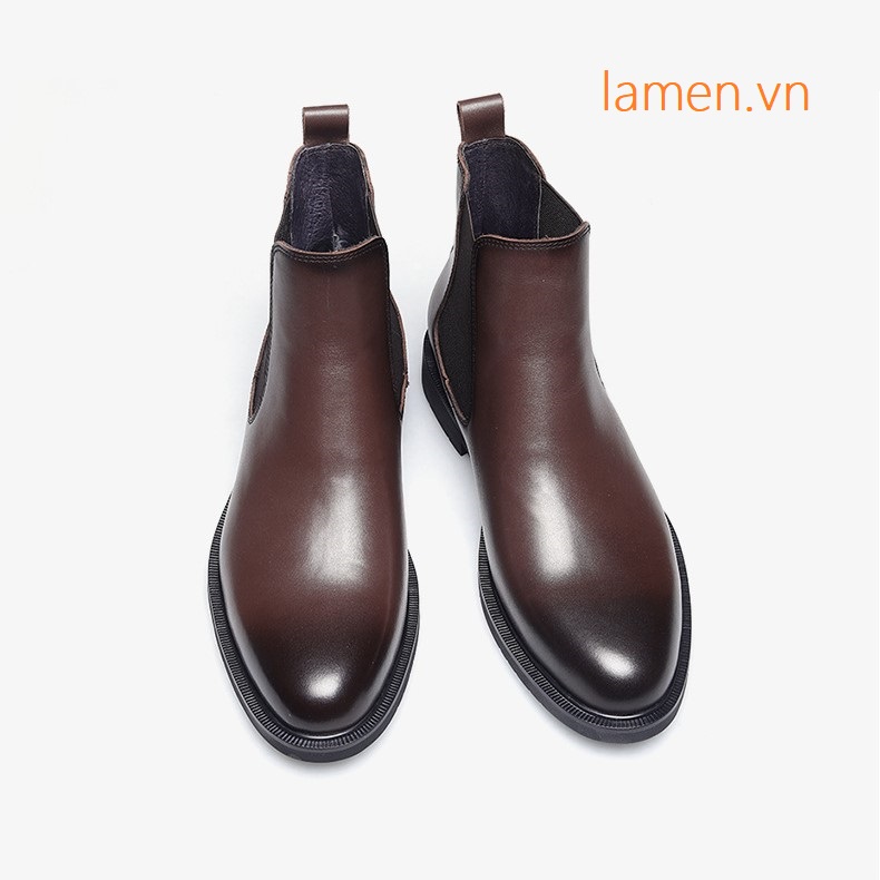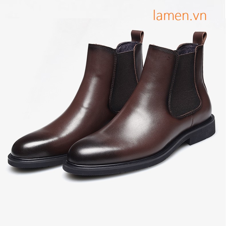 Giày da nam công sở Chelsea Boot - Da ngoài (upper): Da bê - Lót ngoài (uperlining): Da dê - Lót trong (sock lining): Da dê - Đế (outsole): Cao Su - Màu sắc: nhuộm da - Handmade 100%