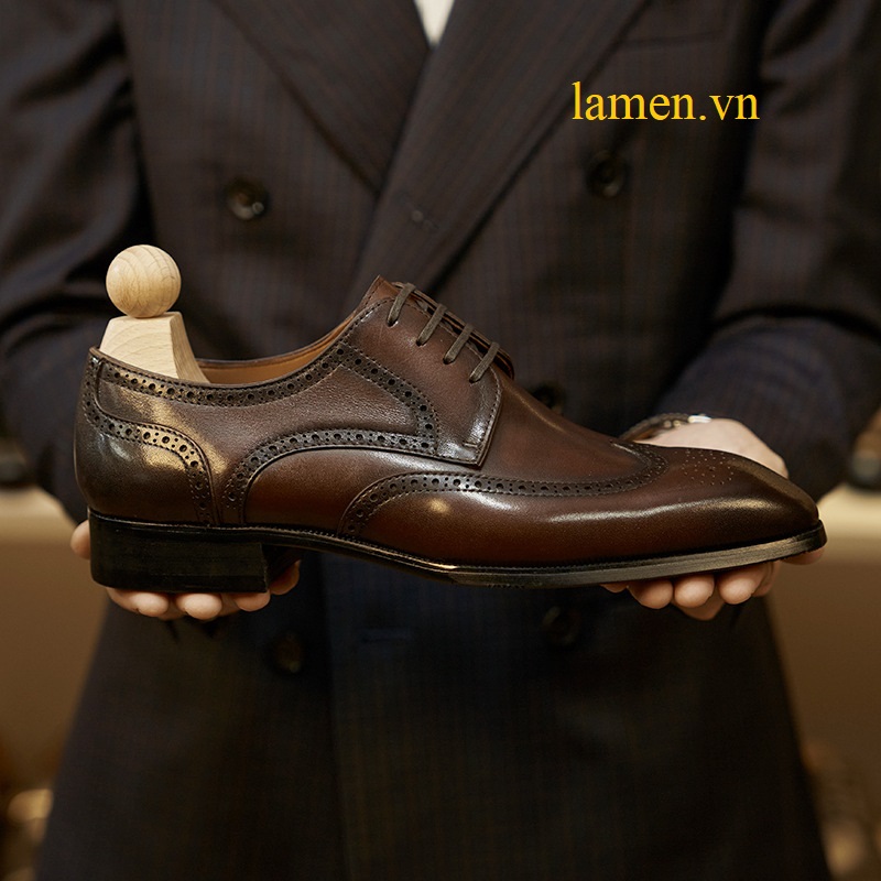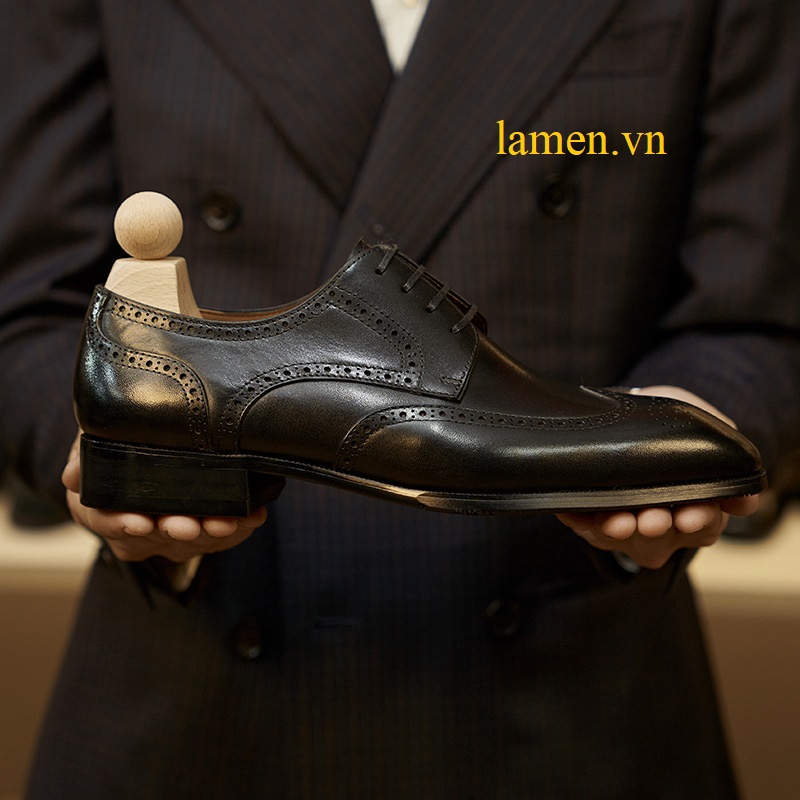 giày tây Derby Brogue công sở được làm bằng da bê cao cấp nhập khẩu, gia công bởi các nghệ nhân lâu năm trong ngành giày của Việt Nam, tạo nên sự hoàn thiện cao và tinh tế trong từng đường chỉ may và kiểu dáng.