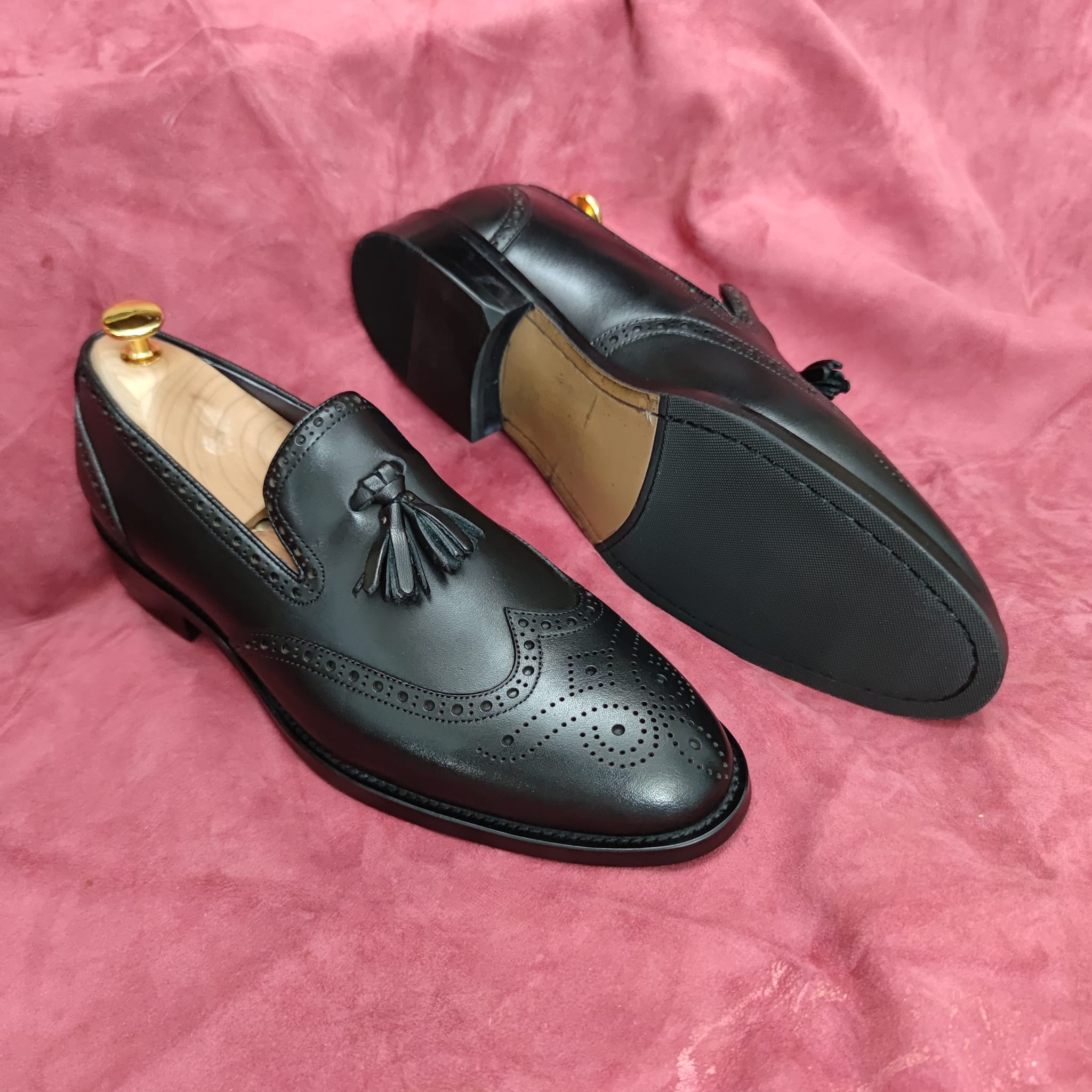Giày Loafer Wingtip Công Sở 2310 - Da ngoài (upper): da bò - Lót ngoài (uperlining): da dê - Lót trong (sock lining): da dê - Đế (outsole): cao su. - Màu sắc: được đánh sơn bằng tay. - Handmade 100% * Thiết kế buộc dây trẻ trung, sang trọng và lịch lãm dễ dàng phối với tây, Vest, suit và Kaki.