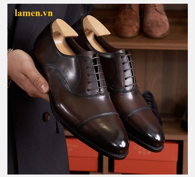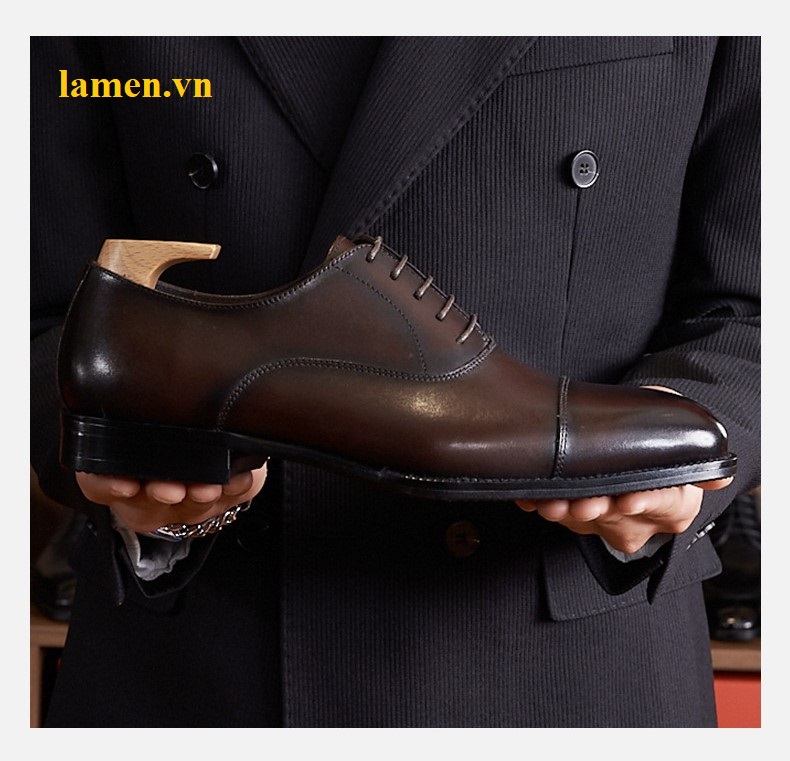 Giày Da Nam Công Sở Oxford - Da ngoài (upper): da bò - Lót ngoài (uperlining): da dê - Lót trong (sock lining): da dê - Đế (outsole): cao su. - Màu sắc: được đánh sơn bằng tay. - Handmade 100% * Thiết kế buộc dây trẻ trung, sang trọng và lịch lãm dễ dàng phối với tây, Vest, suit và Kaki.