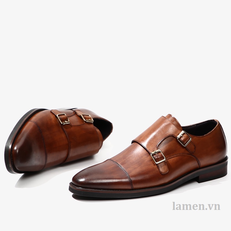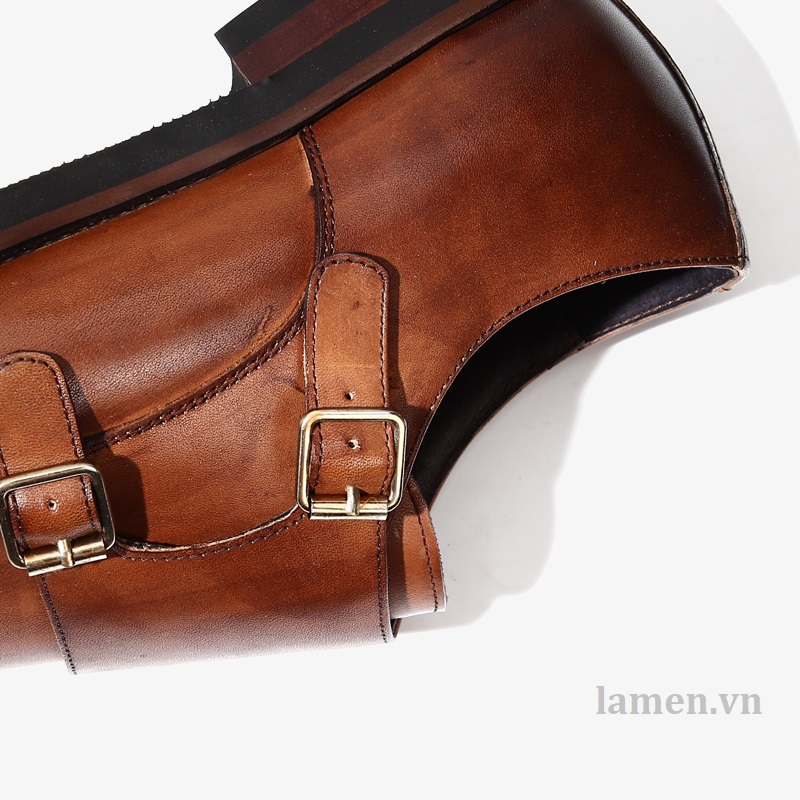 Giày tây nam Double Monk Strap - Da ngoài (upper): da bò - Lót ngoài (uperlining): da dê - Lót trong (sock lining): da dê - Đế (outsole): cao su. - Màu sắc: được đánh sơn bằng tay. - Handmade 100% * Thiết kế buộc dây trẻ trung, sang trọng và lịch lãm dễ dàng phối với tây, Vest, suit và Kaki.